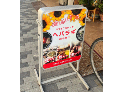 徳山駅近くにて韓国家庭料理とカラオケスナックを営むヘバラギさんの立て看板を制作しました。